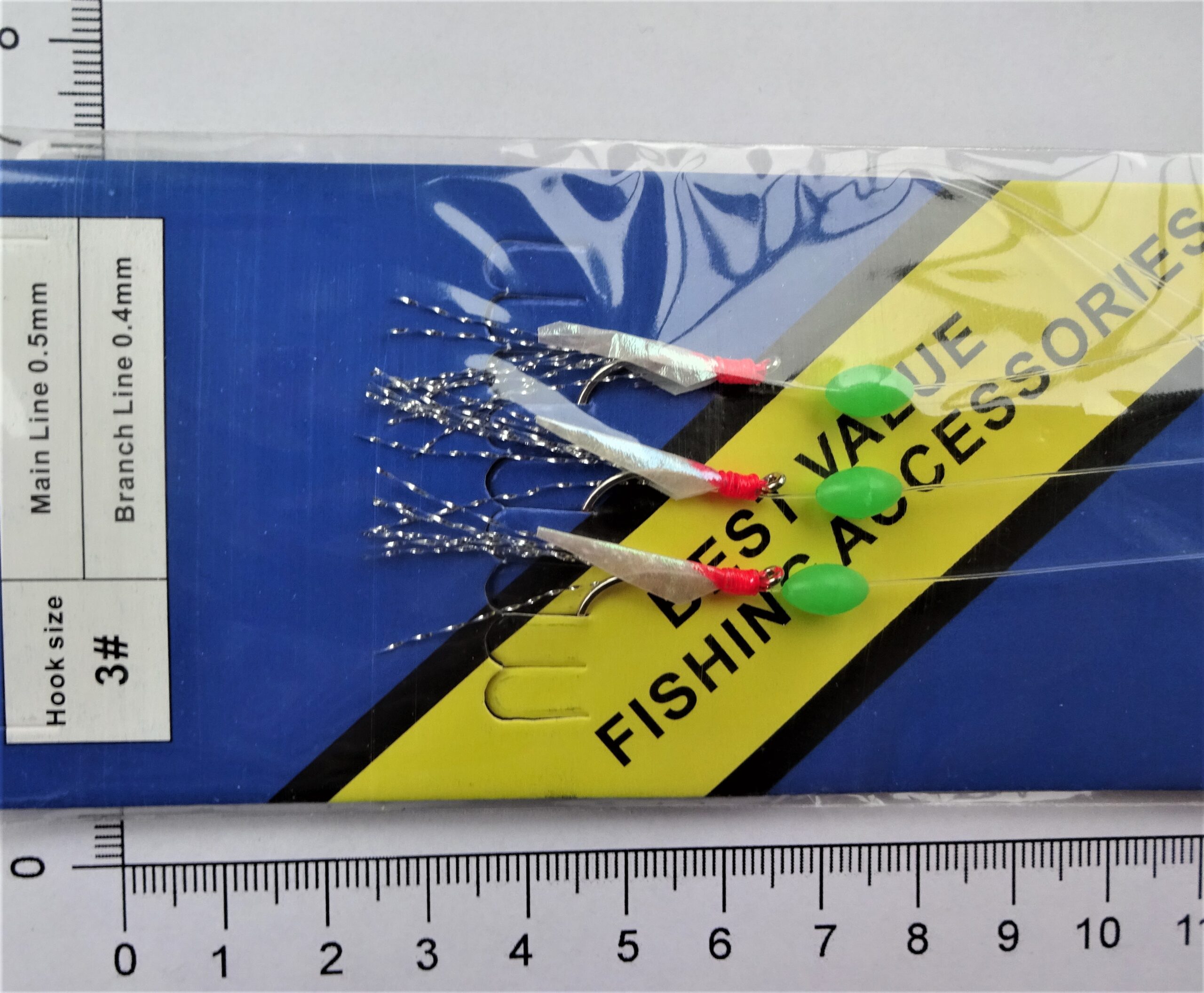 Silde-Makrel forfang med 3 kroge, størrelse 3 (UV) —- x 50