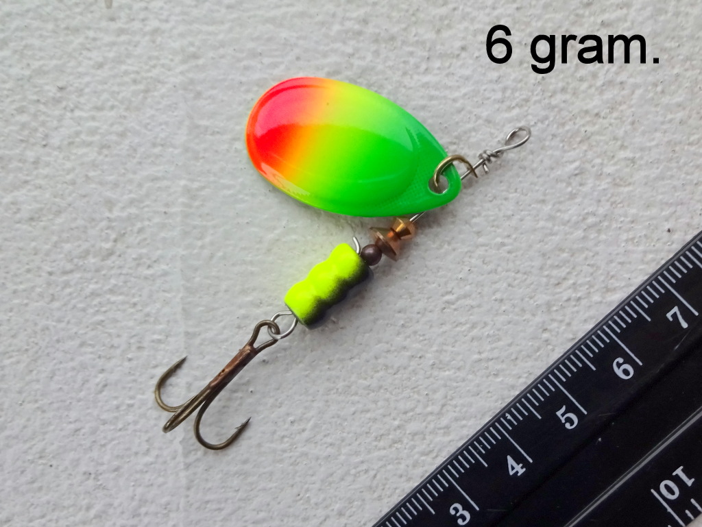 Spinner, 6 gram, gul-rød-grøn.